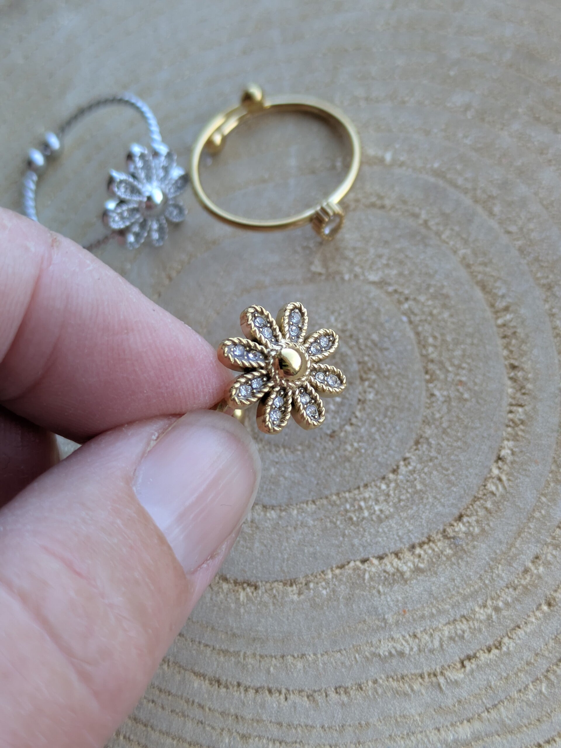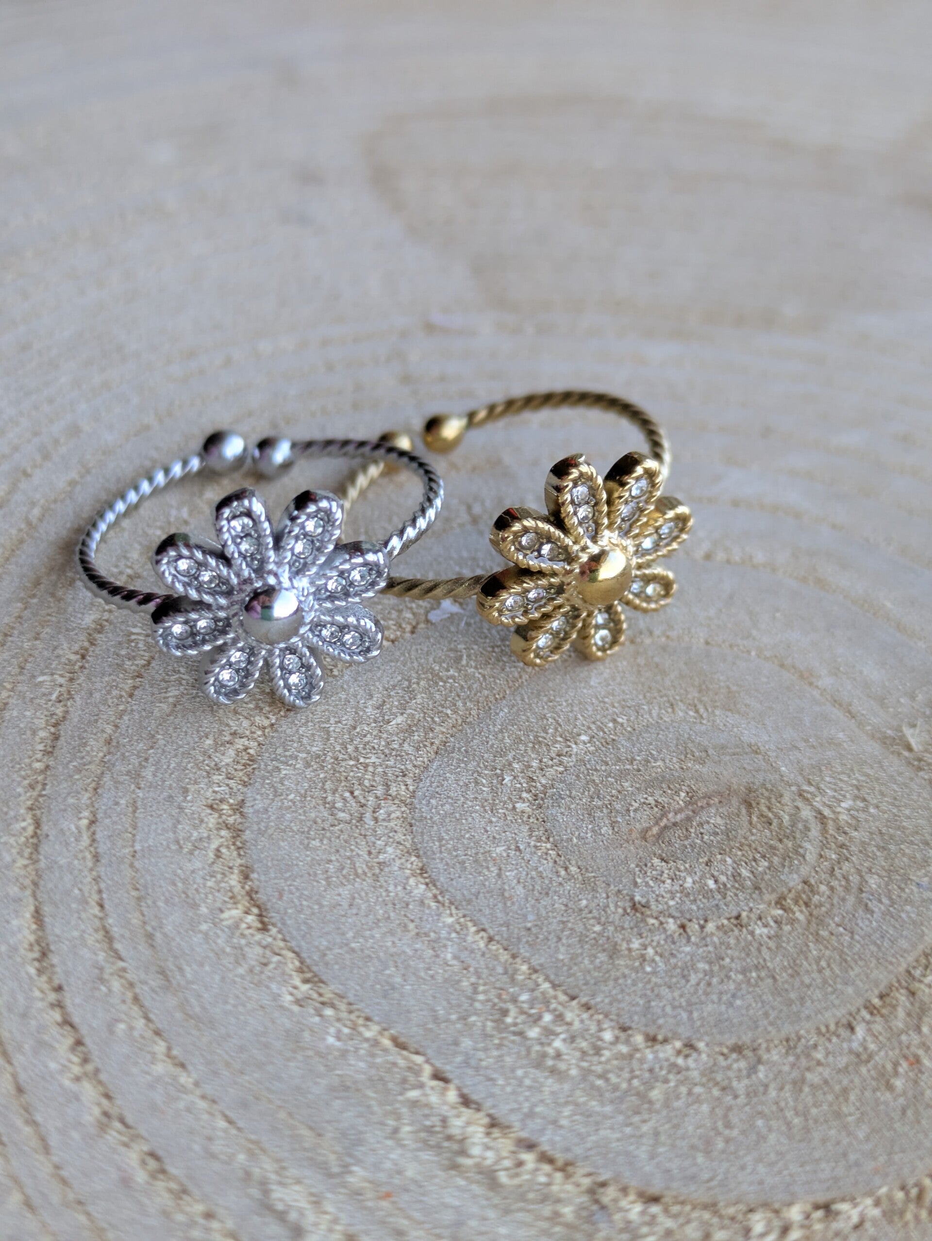 Stainless steel ring met mini zirconia steentjes in vorm van bloem.