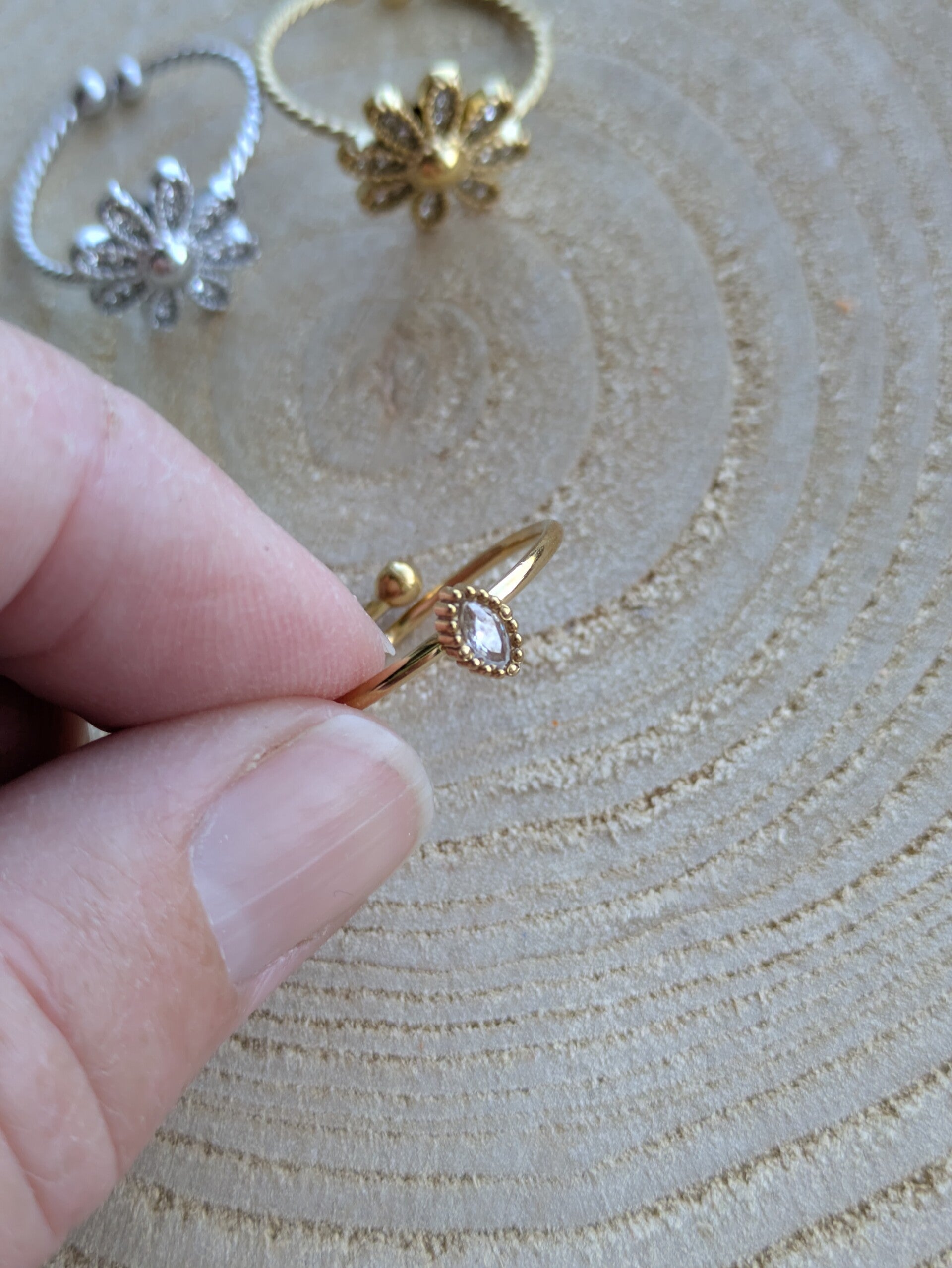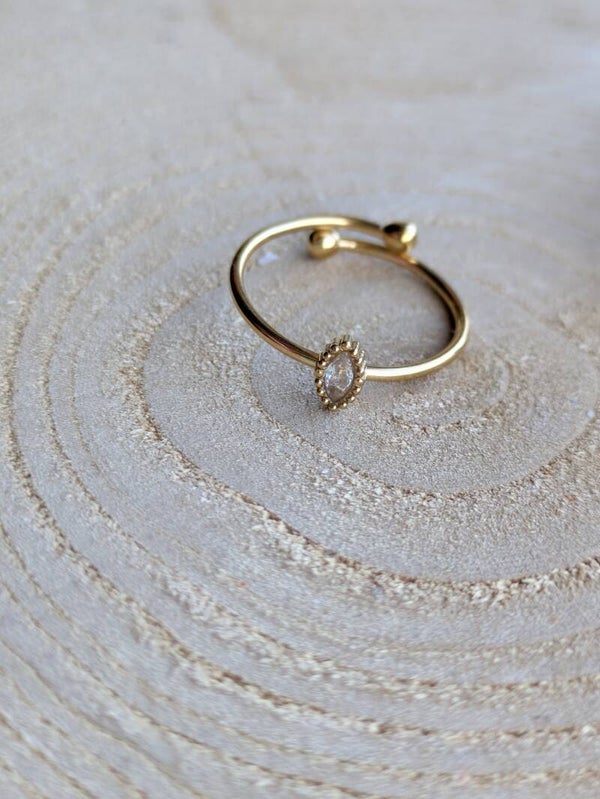 Stainless steel ring met subtiele zirconia steen in Horse eye vorm. Maat aanpasbaar.